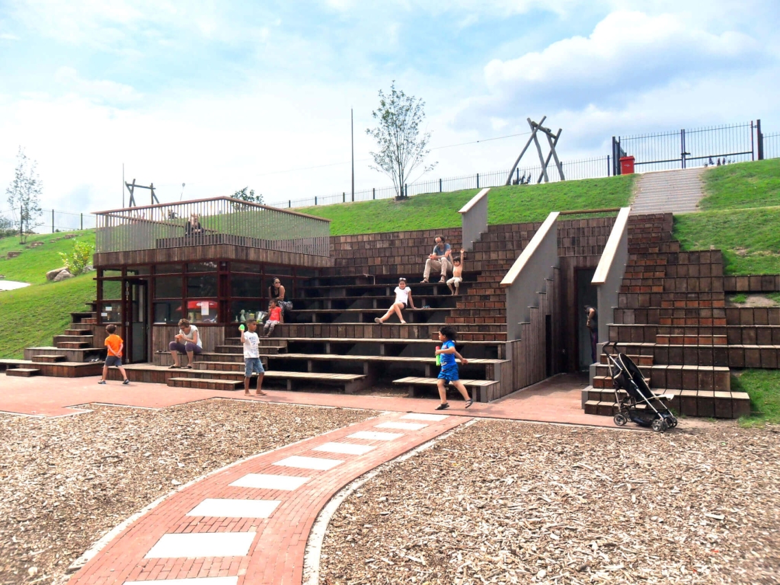 ArchitectButzelaar Van Son Architecten (retail), Buro Sant en Co, Stadsontwikkeling Rotterdam (park) en Vitibuck Architecten (speeltuinloge)
