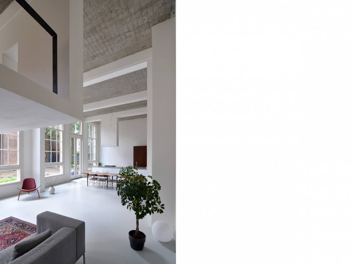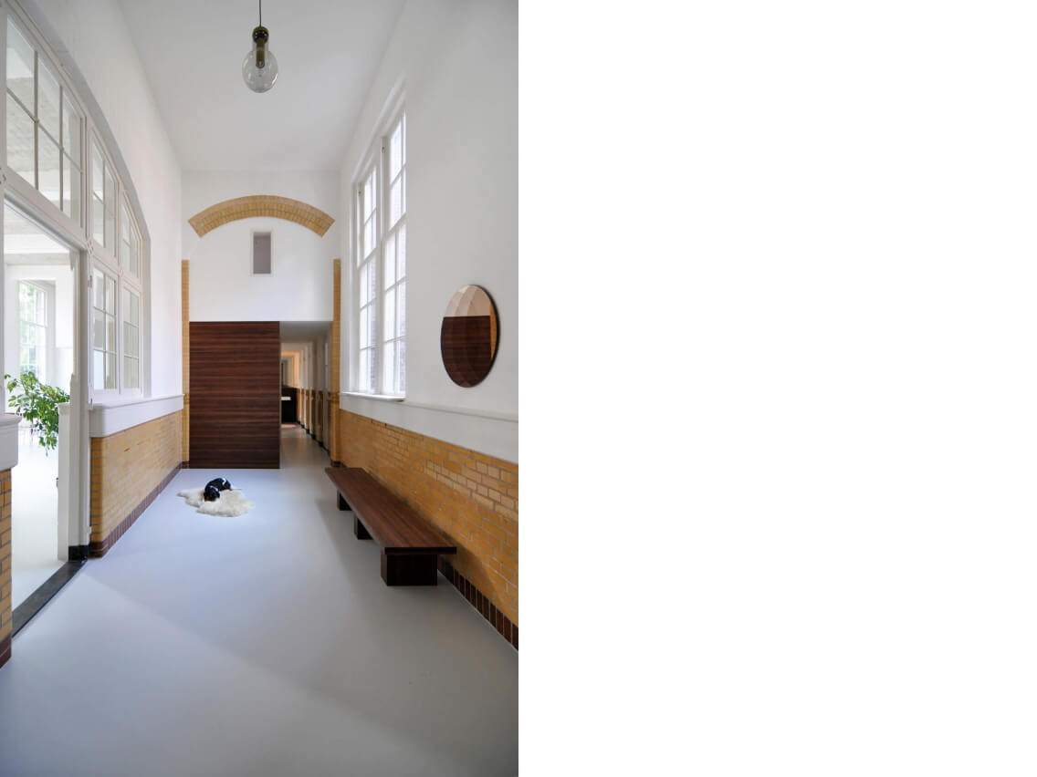 Een honderd jaar oud schoolgebouw is getransformeerd naar zes woningen door middel van Collectief Particulier Opdrachtgeverschap. De architecten hebben de groep begeleid van verkaveling tot de oplevering van het casco en hebben de eigen woning op de begane grond verder ontworpen. Elke woning bestaat uit een tot drie voormalige klaslokalen en de aangrenzende gangzone. De diverse doorbraken en tussenvloeren zijn op elkaar afgestemd en de karakteristieke openingen tussen klaslokalen en gang zijn ingezet voor de ruimtelijke kwaliteit van de woningen. Nieuwe elementen zijn uitgevoerd in hout en goud- of kopergekleurd geanodiseerd aluminium. Het schoolgebouw maakt deel uit van een reeks van drie schoolgebouwen waarvan de pleinen worden samengevoegd tot een groene oase.