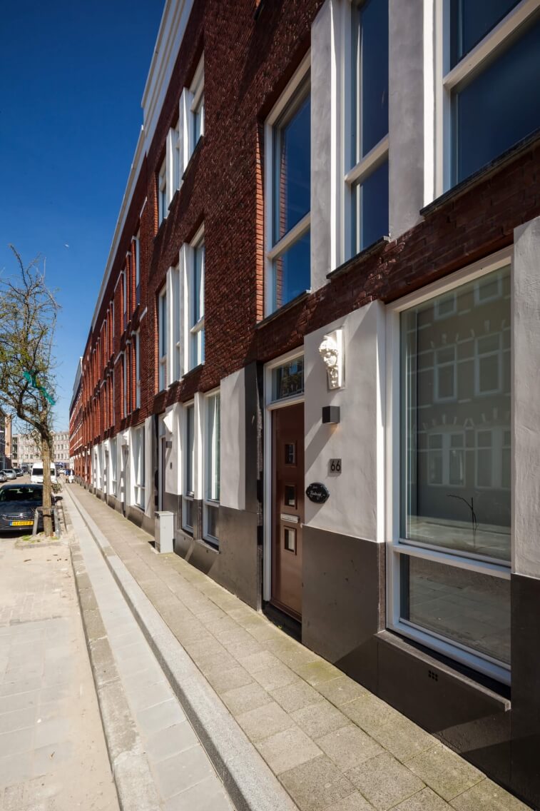 Nieuwe woningbouw in West, geïnspireerd op de oorspronkelijke bebouwing, voegt zich in het negentiende-eeuwse straatbeeld.