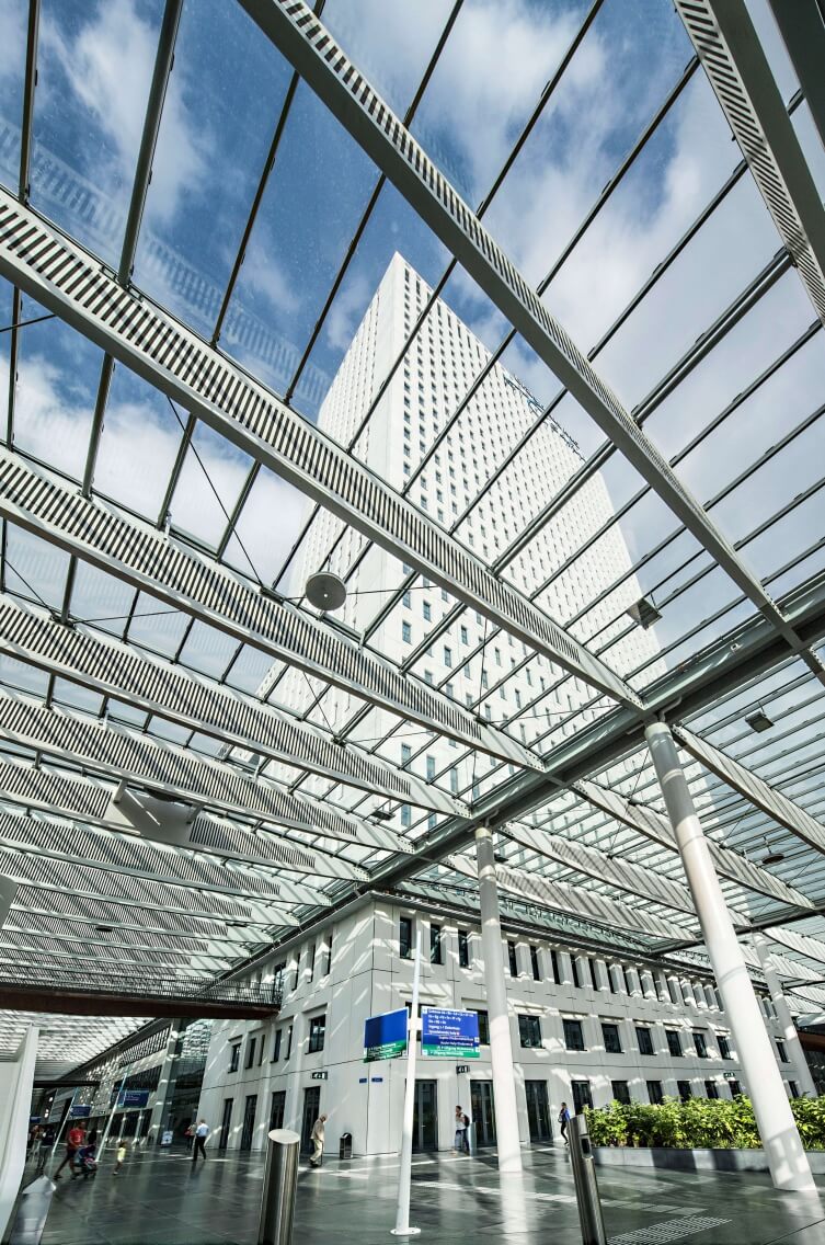 De nieuwbouw van het Erasmus MC in het hart van Rotterdam krijgt steeds meer vorm. De Passage is een belangrijk onderdeel van het nieuwe ziekenhuis. Deze ‘ruggengraat’ organiseert allerlei verbindingen: interne verbindingen tussen de nieuwe en bestaande bouwdelen en in de richting van de verschillende ‘zorgthema’s’, maar ook externe verbindingen met de omringende stad. Samen met de atria zorgt de passage voor licht, lucht en ruimte in het gebouw en legt deze visuele verbindingen met de buitenwereld. In deze grote, met glas overkapte, publieke zone zorgen de houten liggers van de dakconstructie voor tempering van direct zonlicht en een goede akoestiek. Het gebruik van organische materialen draagt, samen met de groenvoorzieningen in de vorm van wintertuinen, bij aan een humane en rustgevende atmosfeer. Dat is belangrijk voor patiënten, medewerkers, studenten en bezoekers.