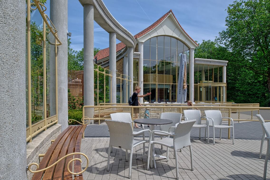 Het ensemble van het voormalige giraffenverblijf en de oude theeschenkerij in Diergaarde Blijdorp is gerenoveerd en geschikt gemaakt voor de nieuwe functie van leeuwenverblijf en restaurant. Bij de transformatie stonden de kwaliteiten van de rijksmonumentale gebouwen van architect Van Ravesteyn voorop. Het leeuwenverblijf is uitgebreid met een nachtverblijf en een nieuw buitenterrein. De horecavoorziening kreeg aan de achterzijde een uitbreiding voor horeca-ondersteunende functies. Beide nieuwe toevoegingen volgen de kenmerkende symmetrische opzet van het ensemble en zijn door hun neutrale schil van verticale bamboelatten goed te onderscheiden van de oorspronkelijke bouw. Het thema van de bamboelatten is doorgezet in het interieur van het restaurant waarin een nieuw balkon is toegevoegd om de capaciteit te vergroten.