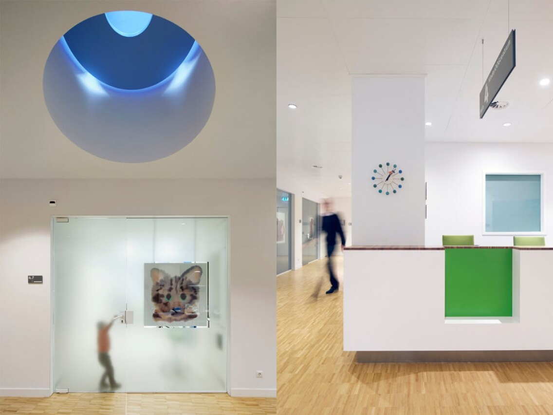 Het karakteristieke hoofdgebouw van het Oogziekenhuis is in de jaren veertig ontworpen door A.J. van der Steur en door de jaren heen regelmatig verbouwd. Door het realiseren van een nieuw Kinderoogcentrum op de begane grond is een donker labyrint van lange gangen en afgesloten kamers getransformeerd tot een open en uitnodigend centrum voor kinderoogheelkundige topzorg.