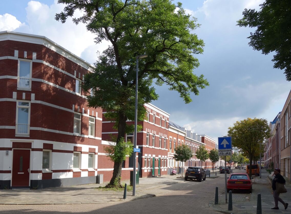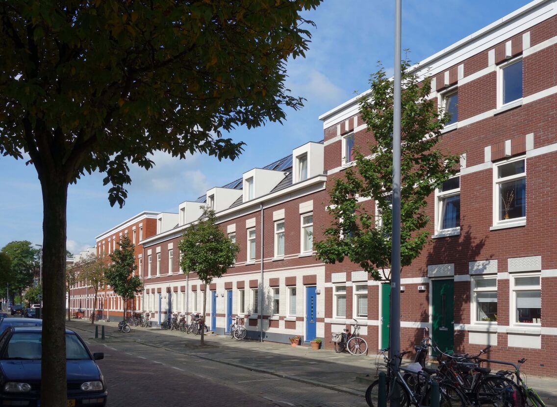 In vormgeving en stijl sluit deze reeks nieuwe woningen in Noord aan bij de negentiende eeuwse omgeving.