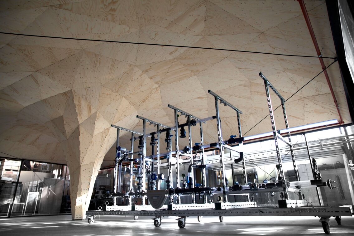 Skilledin Office is het eerste door robots gefabriceerde gebouw van Nederland. Het gebouw van 130 vierkante meter omvat kantoor, presentatieruimte en trainingscentrum van opdrachtgever Skilledin, specialist in trainingen in de industrie. Evenals de ontwerper is Skilledin huurder van een (indoor) kavel in het Innovation Dock. Het gebouw heeft een houten dak bestaande uit 225 unieke houten elementen die ruim acht meter overspannen. Het gewelf rijst op uit een decentraal geplaatste kolom overvloeiend in het dak. Basis voor dit gewelf zijn digitale formfinding technieken. Het resultaat is een dubbel gekromde vorm, vertaald naar driehoekige houten panelen die met vingerverbindingen. Instructies voor het robotgestuurde fabricageproces zijn rechtstreeks vanuit het digitale model gegenereerd. Zo konden allerlei complexe bewerkingen in korte tijd worden voorbereid.