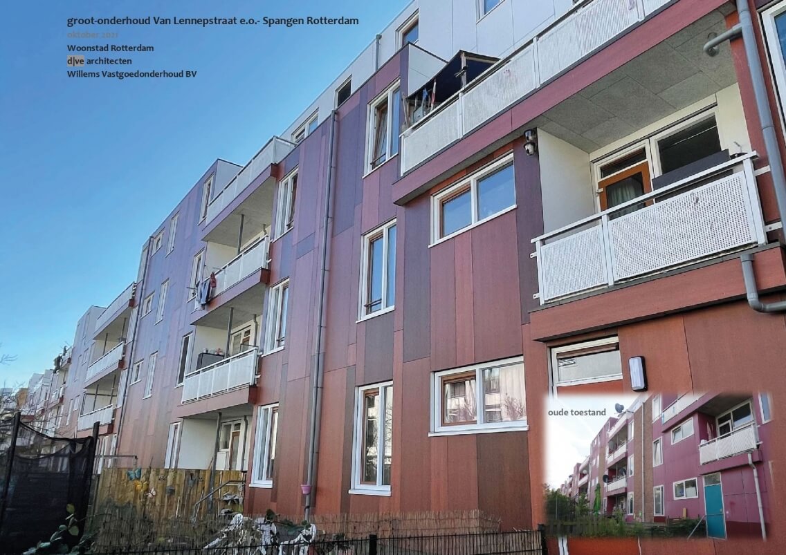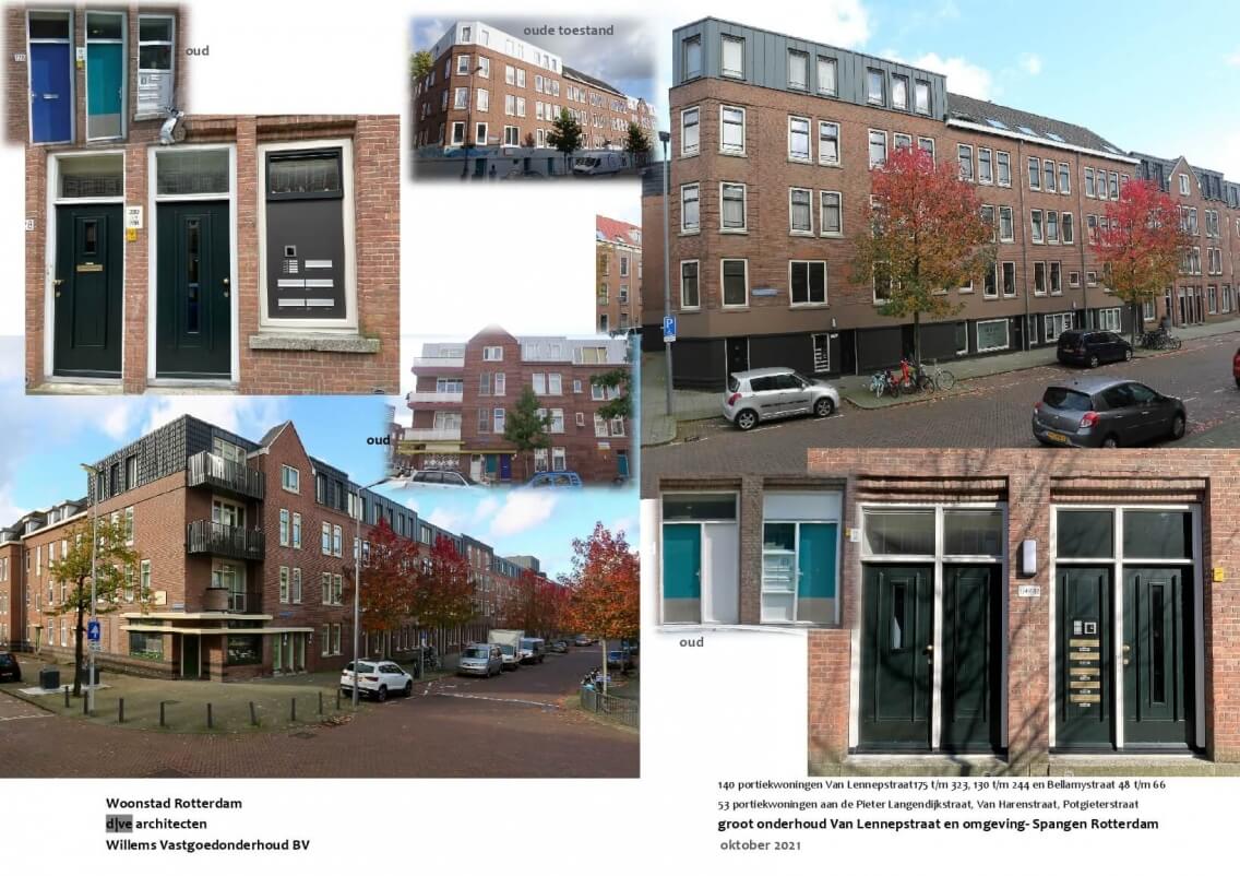 Bij groot-onderhoud van deze woningen aan Van Lennepstraat en omgeving doet zich de mogelijkheid voor ook het gevelbeeld in de Spangense context te verbeteren. Bij hoog-niveau-renovatie van deze woningen, in de 80-er jaren uitgevoerd volgens de Q&Q-methode, stonden volkshuisvestingsbelangen voorop en werd aan het historische straatbeeld weinig waarde gehecht. Door de maatschappelijke ontwikkeling sindsdien is het belang van de historische en architectonische kwaliteit van de stad enorm opgewaardeerd. Dit heeft enkele jaren geleden geleid tot restauratie van het naastliggende bekende bouwblok (van architect Michiel Brinkman) aan de Justus van Effenstraat, wat Rijksmonument is geworden. Eigenlijk is Spangen als geheel, een van de eerste samenhangende grootschalige ontwikkelingen in Rotterdam als consequentie van de woningwet van 1901, een monument van de volkshuisvesting.