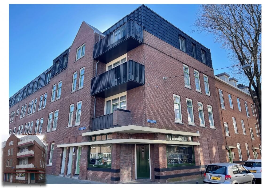 Restauratieve renovatie van woonblokken getuigt van respect voor de historische kenmerken en samenhang van de wijk Spangen.